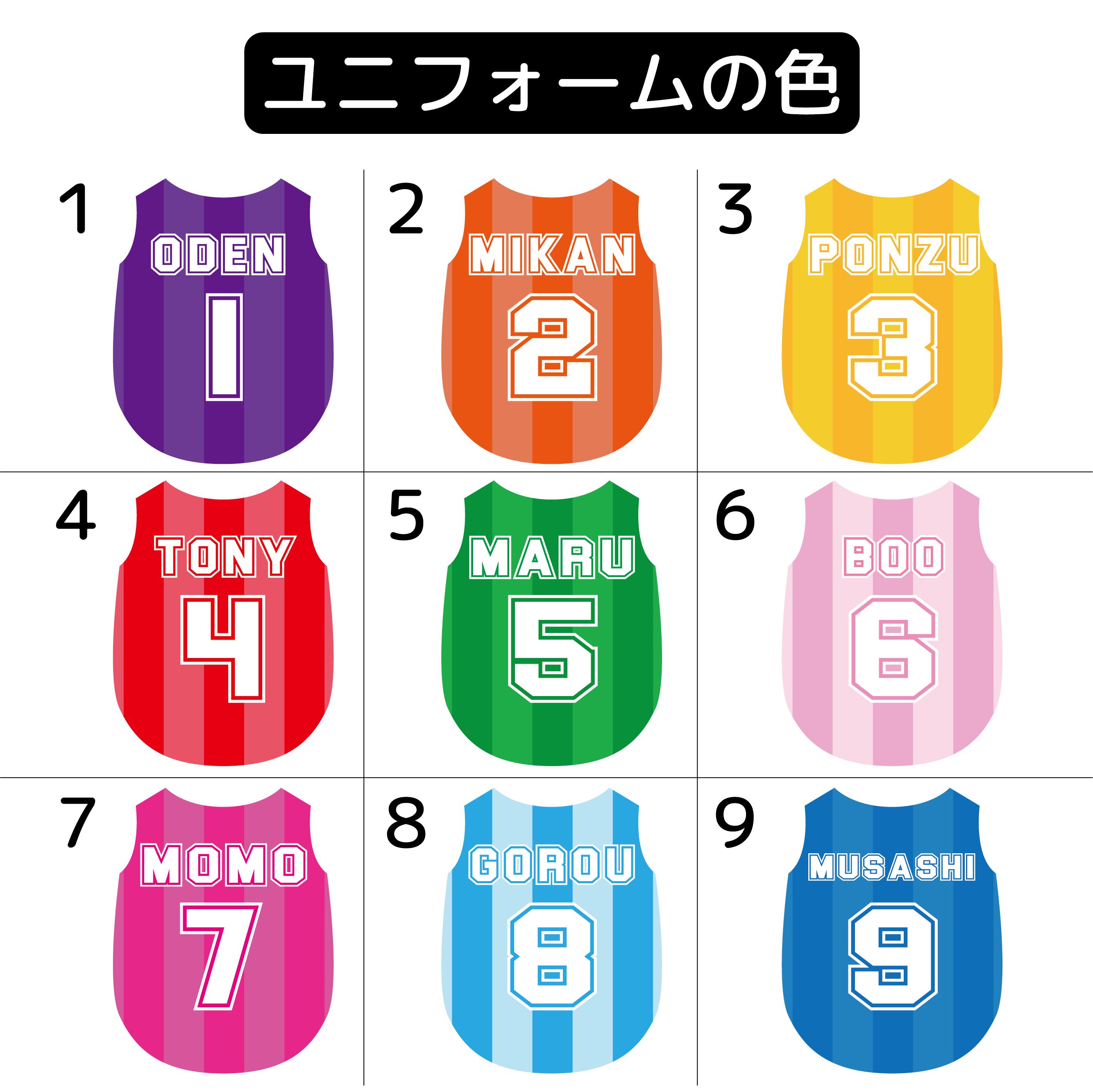 1、ユニフォームの色を 1〜9の中から選ぶ